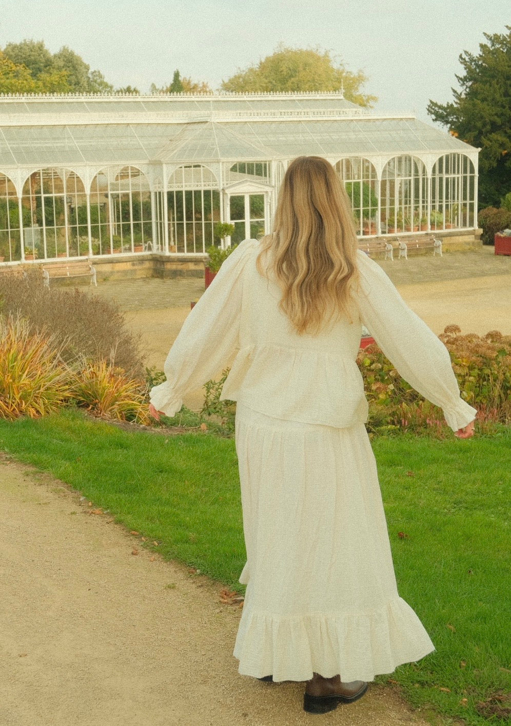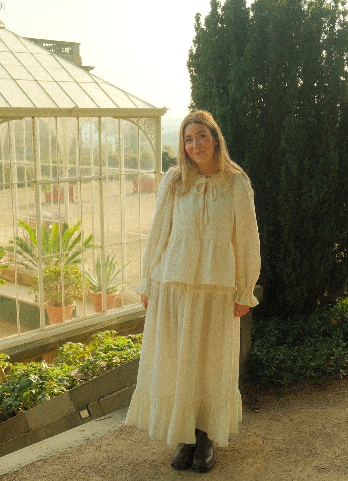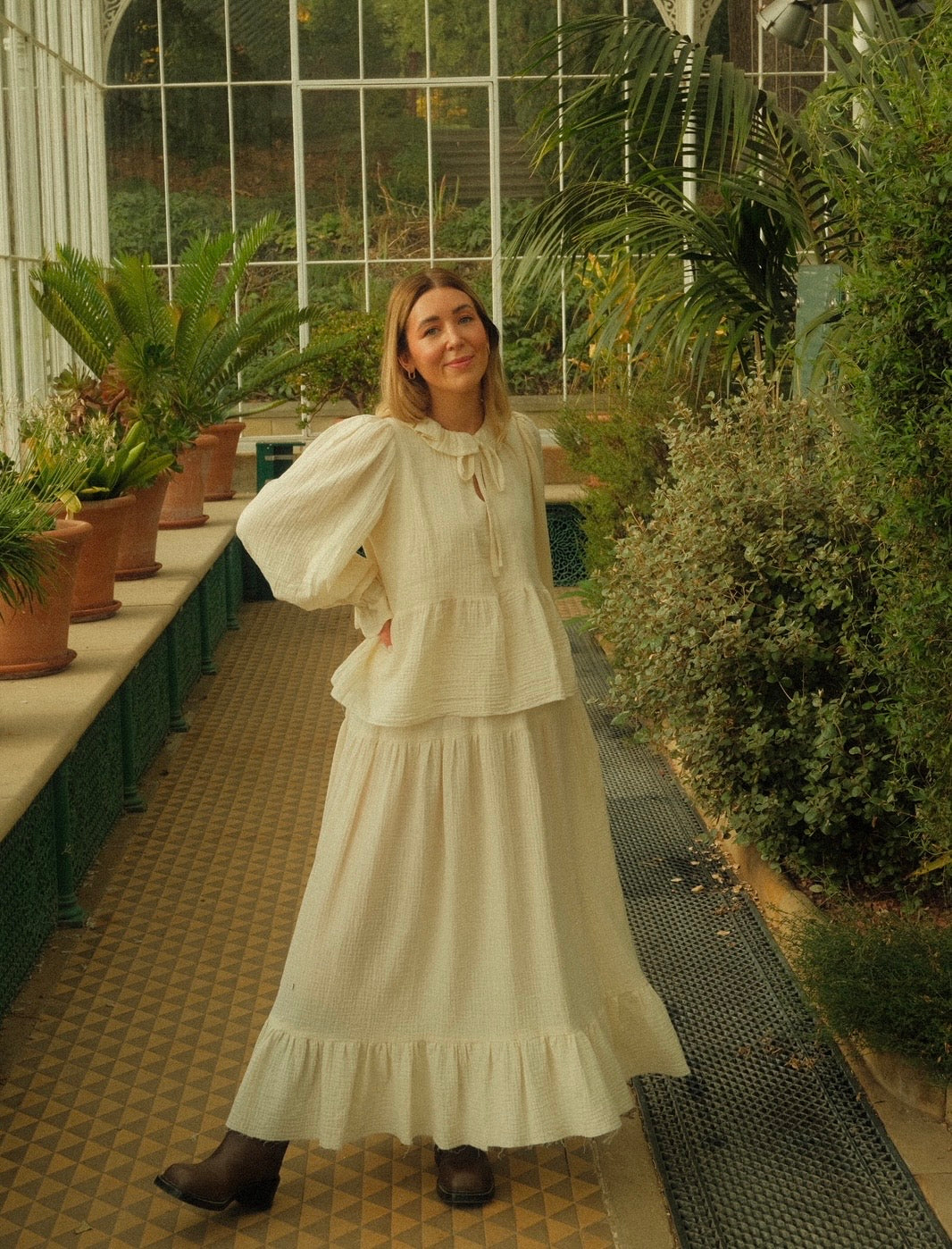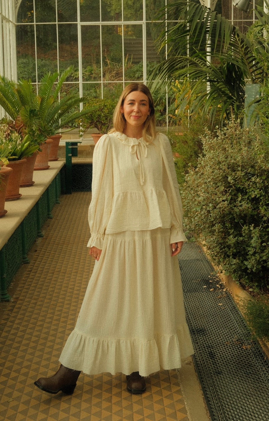 The Mabel Blouse is the perfect, throw on, ultimate layering piece- perfect for those ‘jeans and a nice top’ occasions or works best paired with our Mabel Skirt. She’s the perfect floaty, comfortable piece and the Cotton Double Gauze makes it so soft and snuggly but also light and airy enough to stay in your wardrobe all year round!